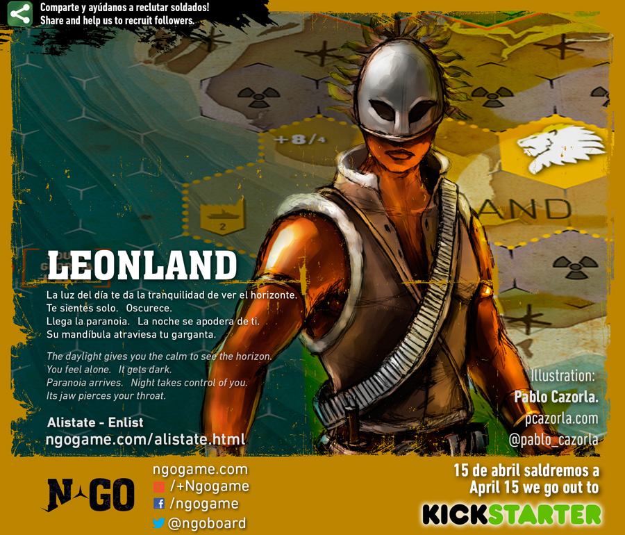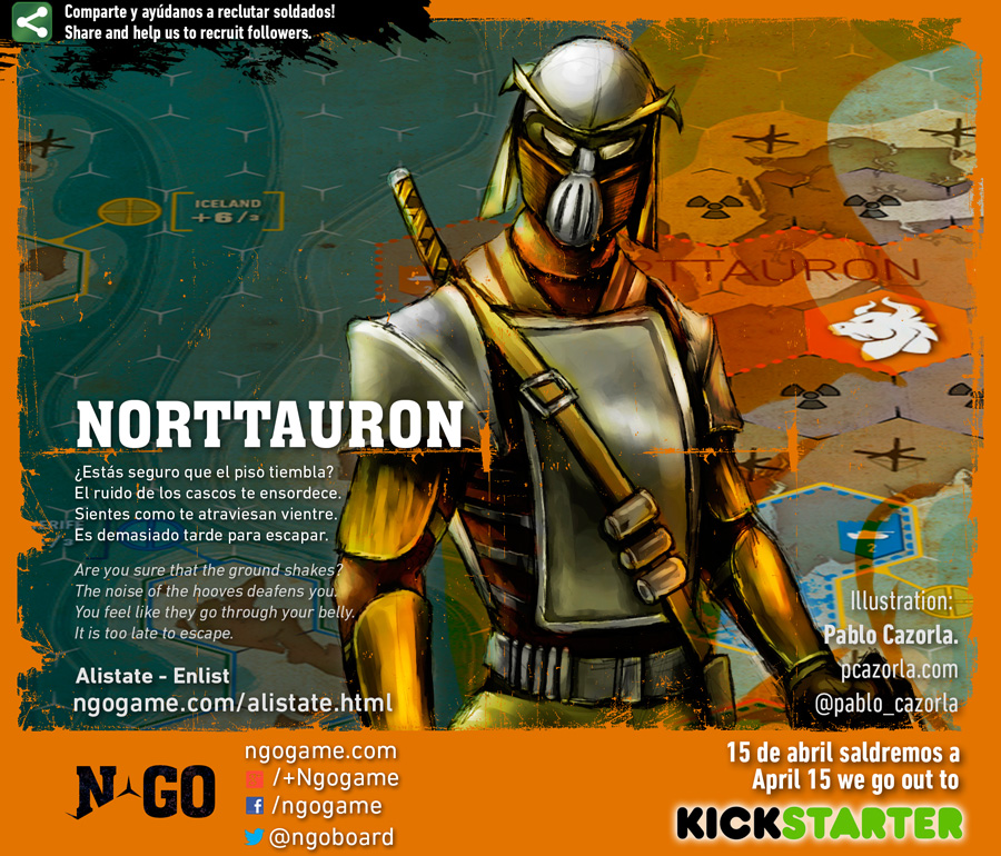 In the post apocalypse world of the board game NGo, the four states that govern the world aim to occupy territories to guarantee the survival of their people. The one who carries out said objectives will be the victor.
