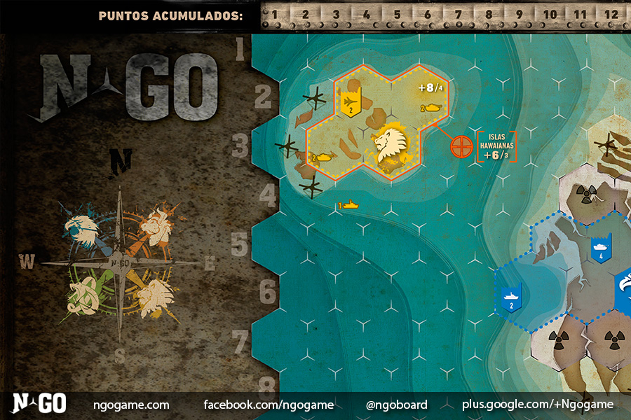 Novedades | Contacto | Adquirir | Alístate | Eventos | Qué es NGo | Cómo jugar NGo | Proceso de Diseño | Tablero | Fichas | Cartas | Extras | Estados