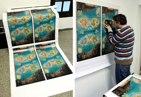 The 100% of game boards are done, as you can see in the picture, pieces bagged and card decks. Everything looks fantastic!
