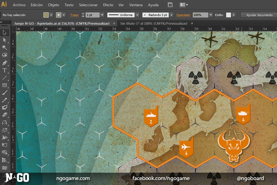 El tablero ha sufrido muchas modificación desde que comenzamos a planificar el juego de mesa NGo, el mapa tenía que tener toda la precisión que demandábamos y una estética atractiva.