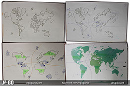 The board has undergone many modifications ever since we began planning the table game NGo. The map had to have all the precision that we demanded and attractive aesthetics.